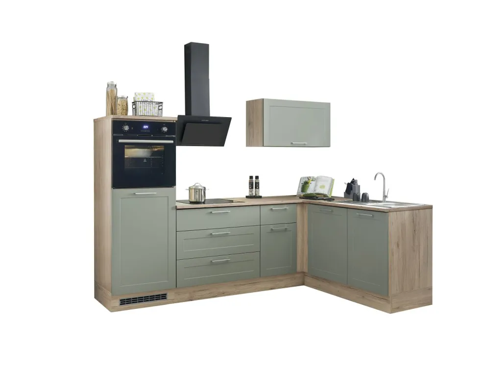 Façade : MDF (panneau de fibres de bois de densité moyenne) pelliculé thermoformé ton vert jonc