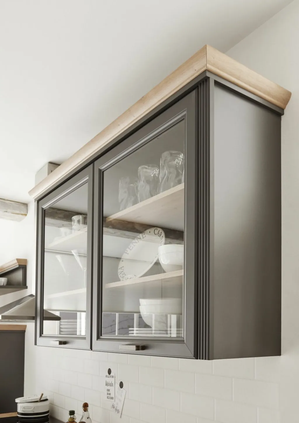 1 meuble haut avec 2 portes partiellement vitrées et 4 tablettes