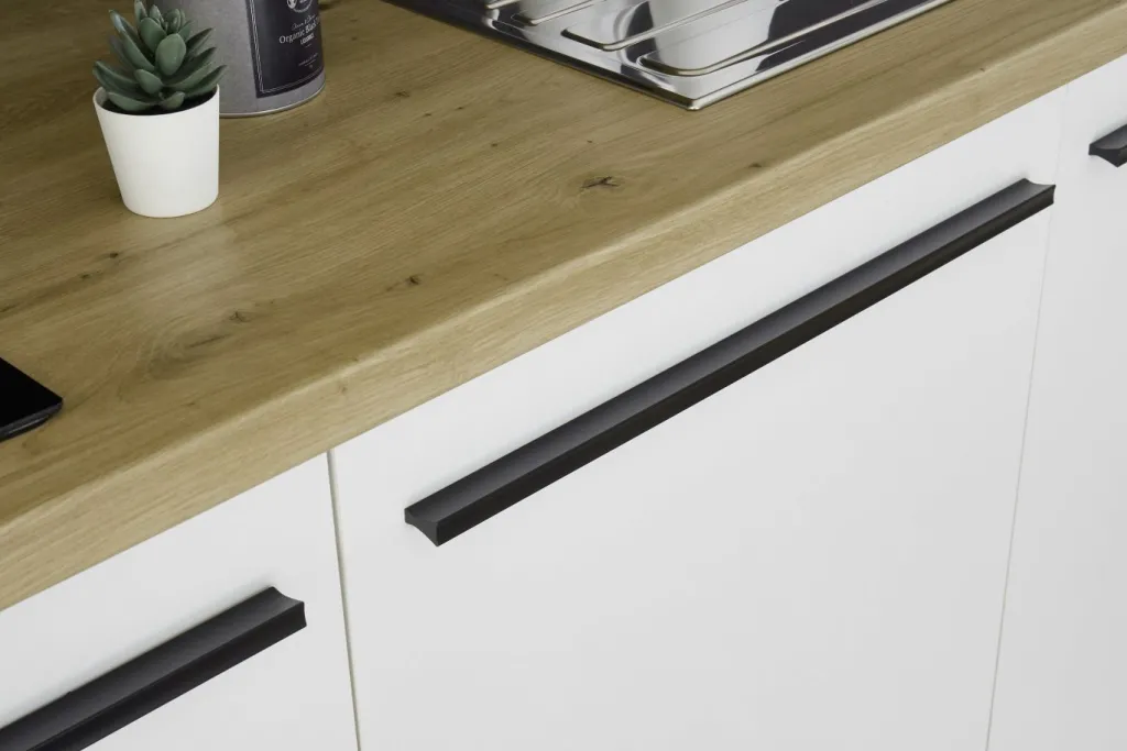Poignées : matière synthétique ton noir mat