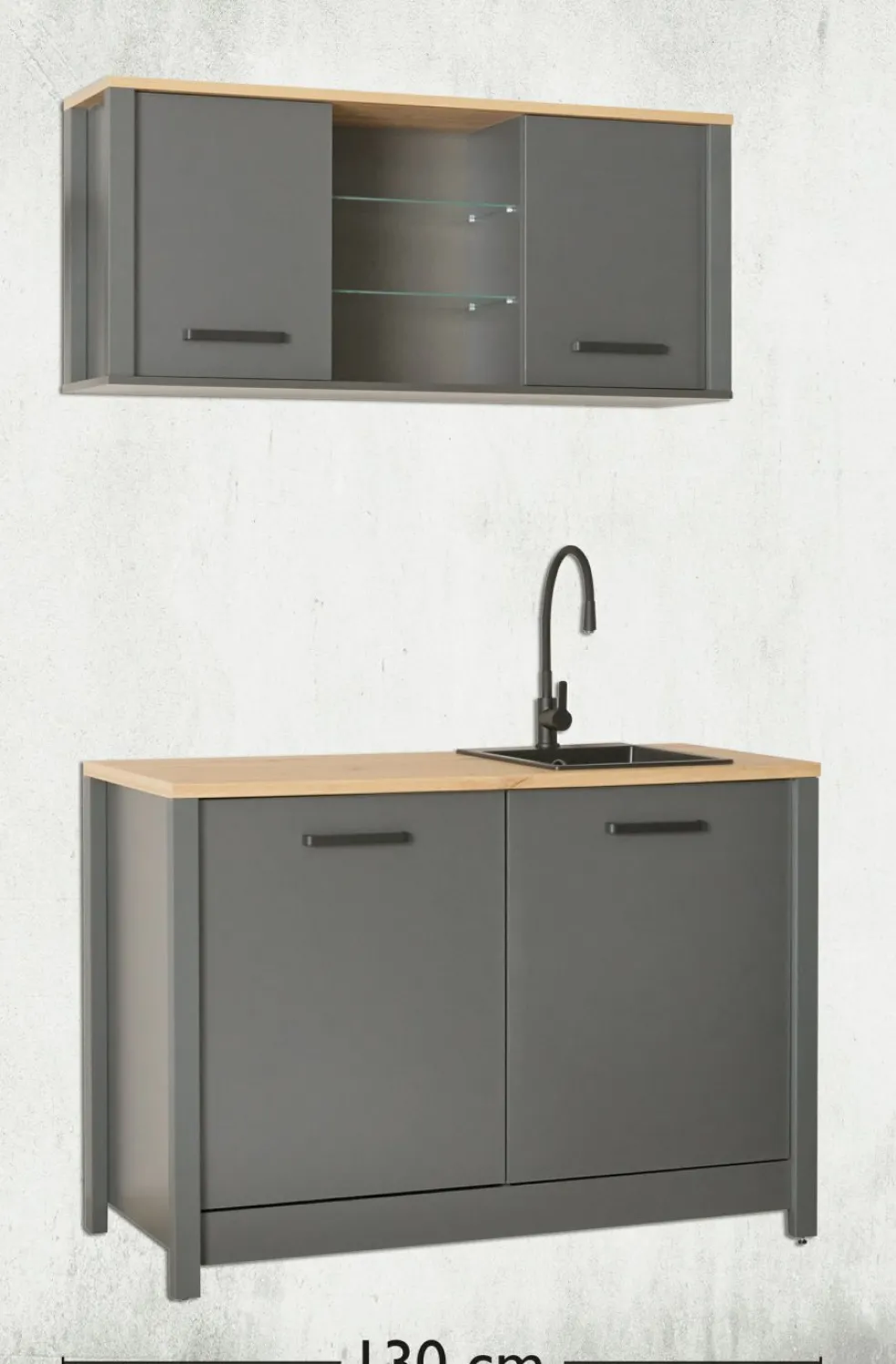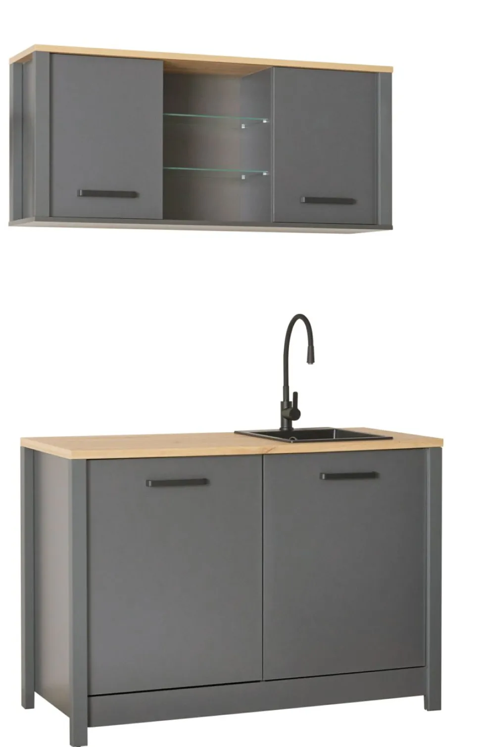Façade et caisson : MDF (panneaux en fibres de bois de densité moyenne), panneaux de particules ton anthracite