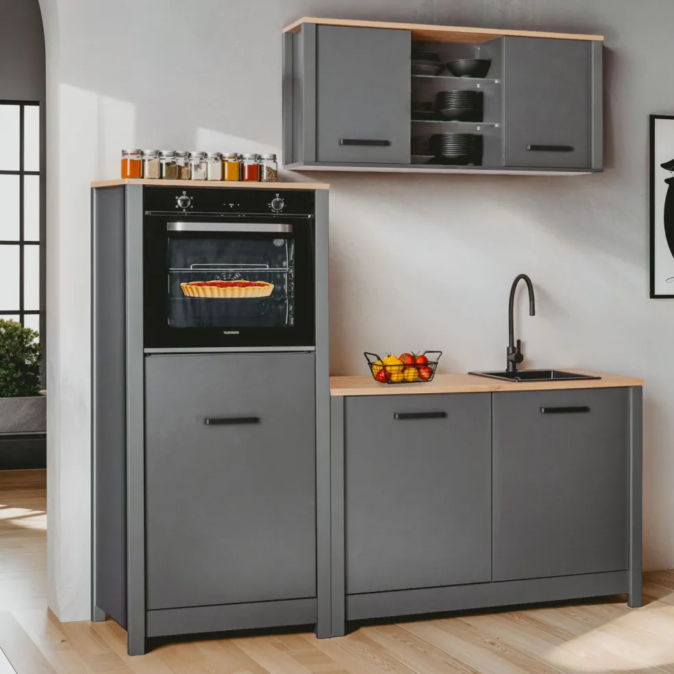 Façade et caisson : MDF (panneaux en fibres de bois de densité moyenne), panneaux de particules ton anthracite