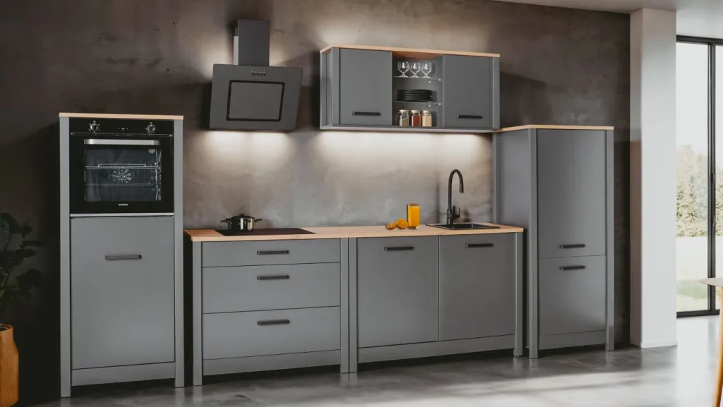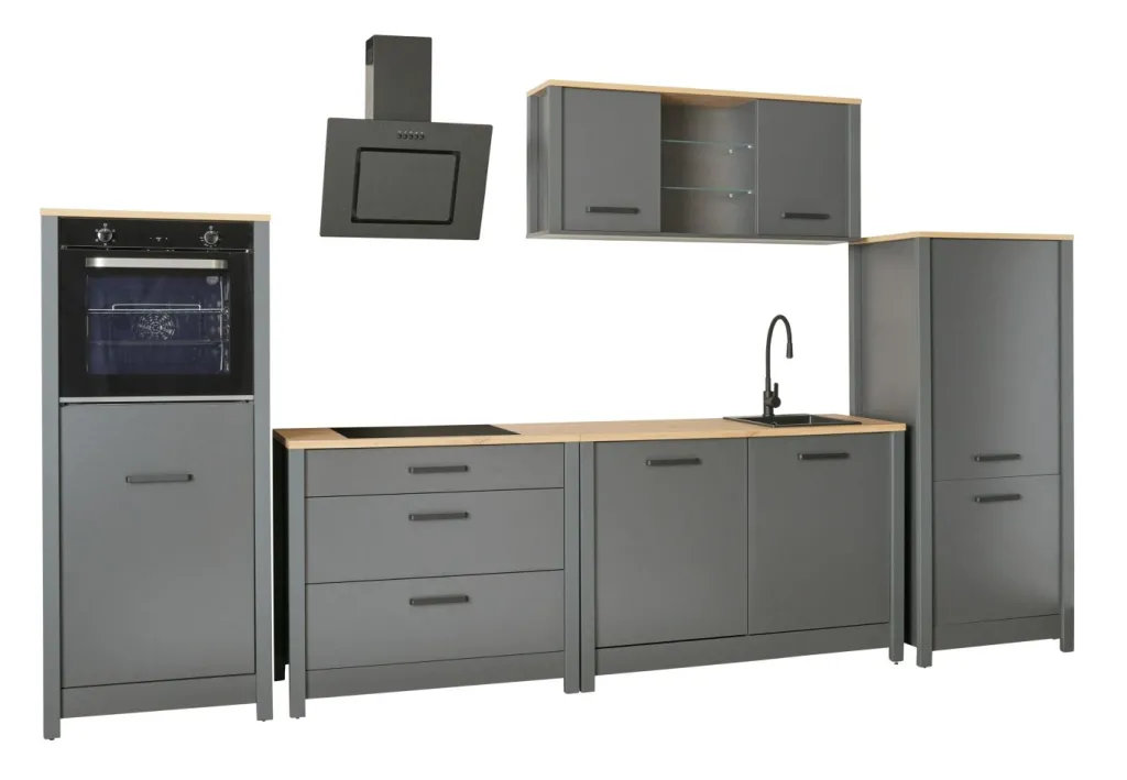 Façade et caisson : MDF (panneaux en fibres de bois de densité moyenne), panneaux de particules ton anthracite