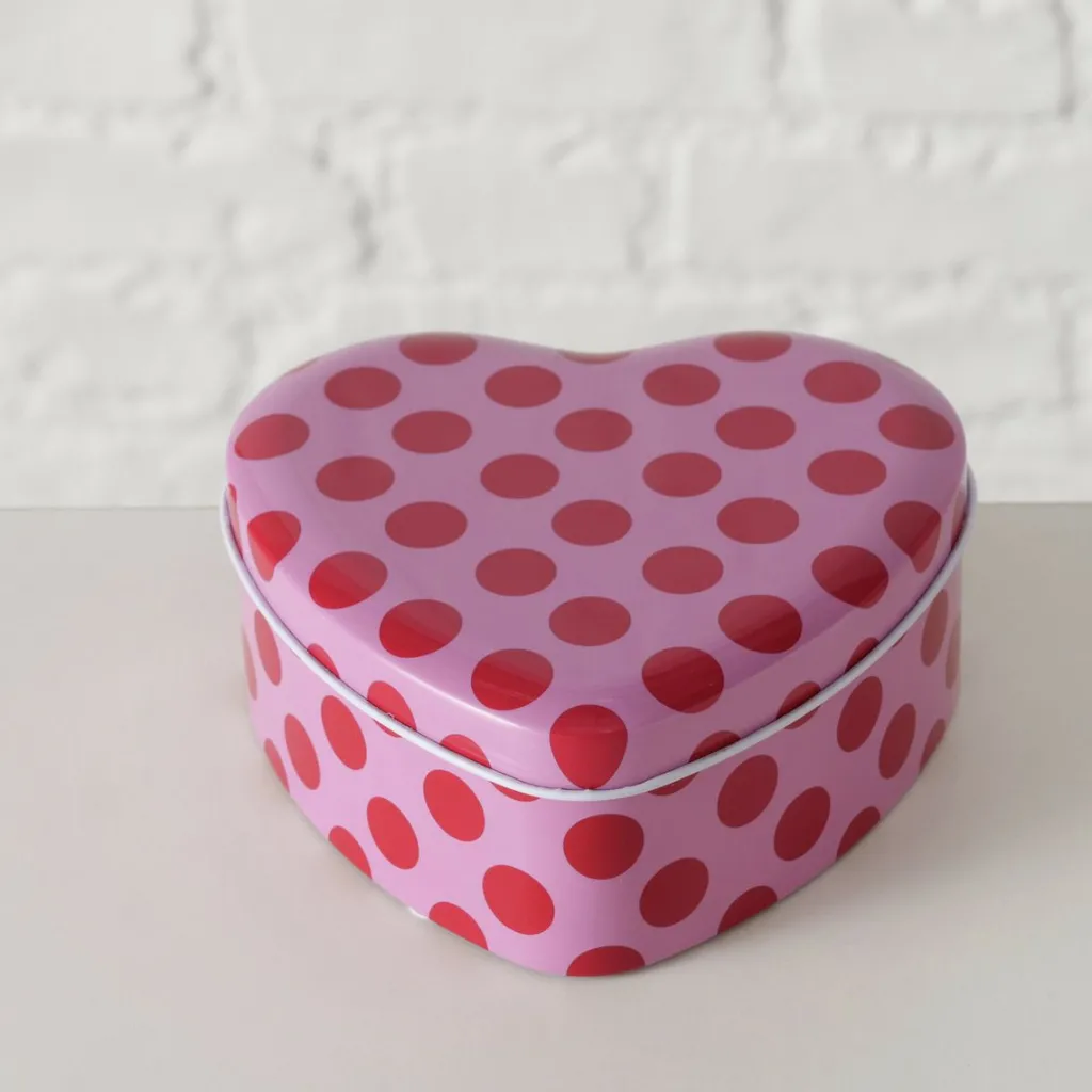 Coloris : rose à pois rouges sur tout l’extérieur de la boîte