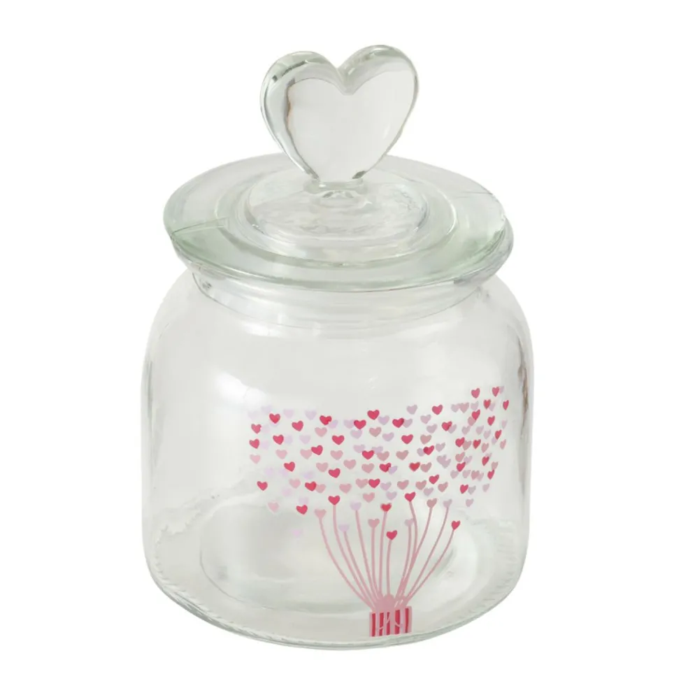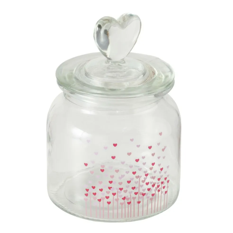 Coloris : ton transparent avec cœurs rouges, couvercle et poignée en forme de cœur, dans deux modèles différents*