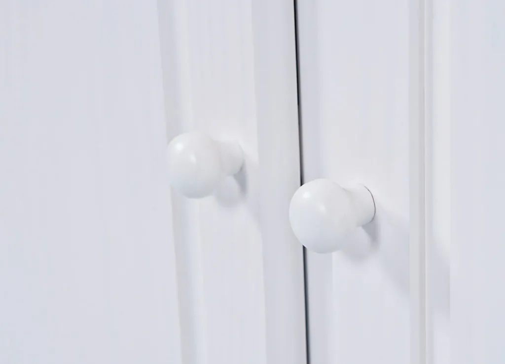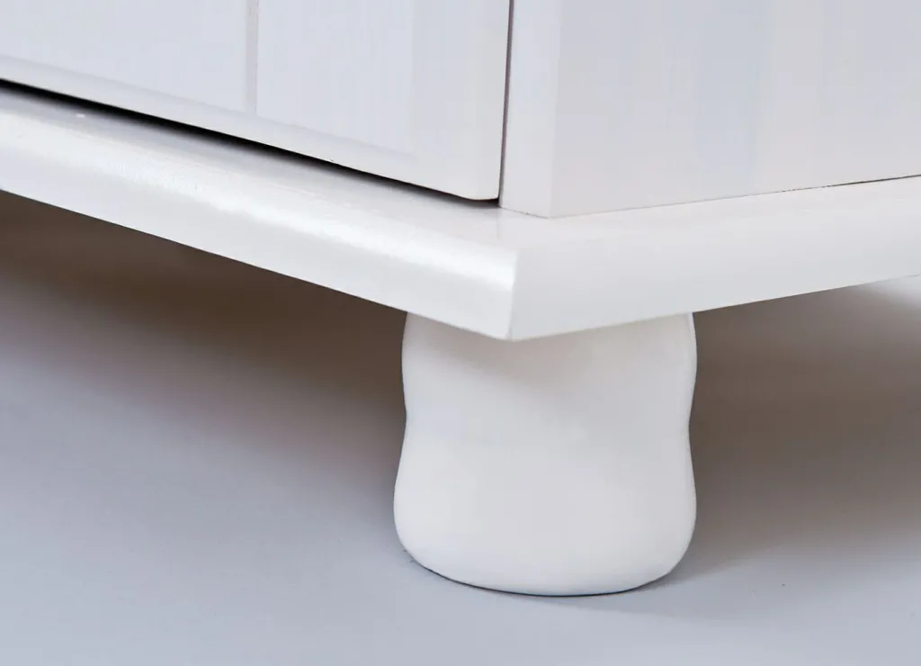 pin massif (Brésil) laqué ton blanc / verre transparent