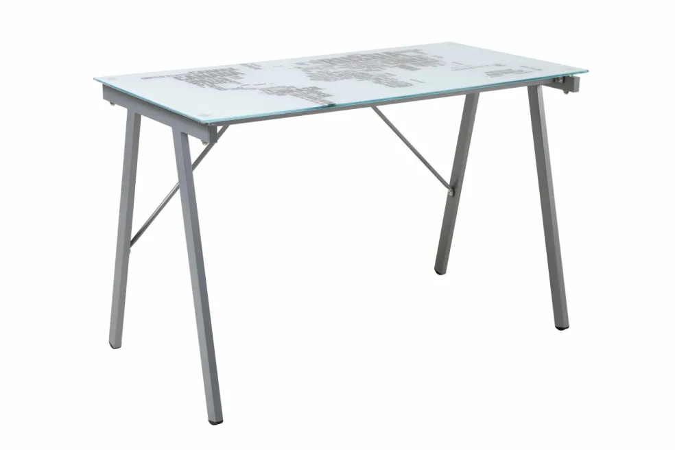 Plateau de table : verre de sécurité ton blanc avec motif mappemonde