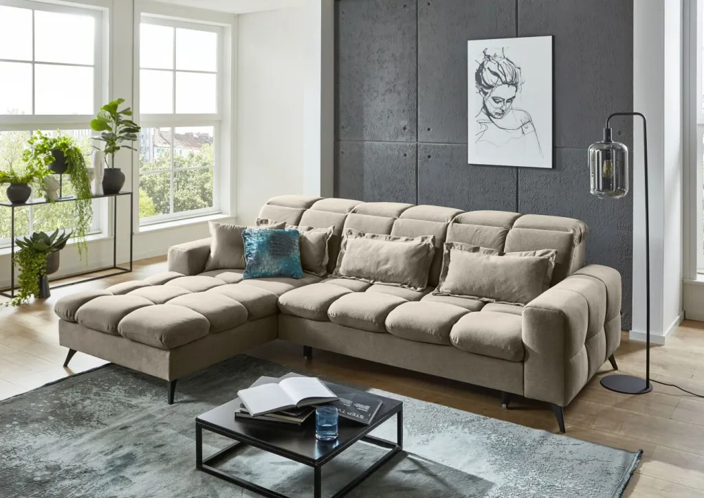 | Equipement canapés: | Appuie-tête(s), Dos habillé, Méridienne à gauche, Prolongement de l’assise manuellement, incl. coussins | ||