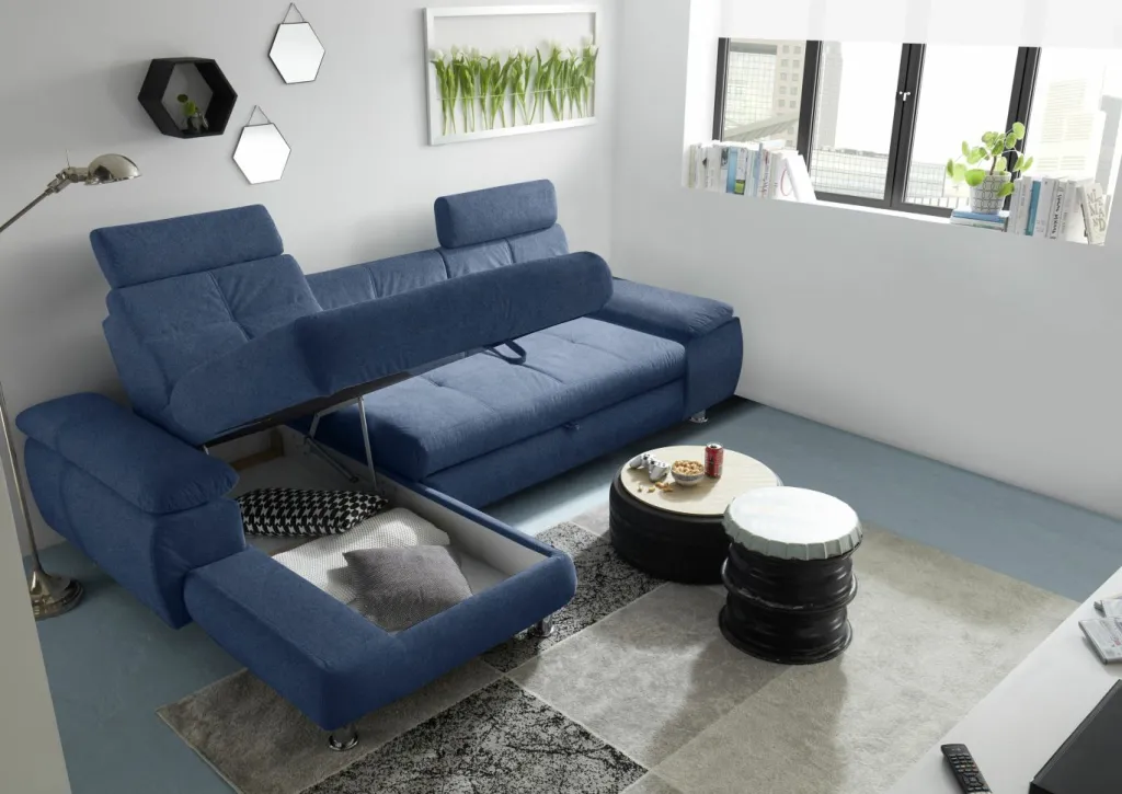| Equipement canapés: | Appuie-tête(s), Dos habillé, Méridienne à gauche, incl. coffre de lit | ||