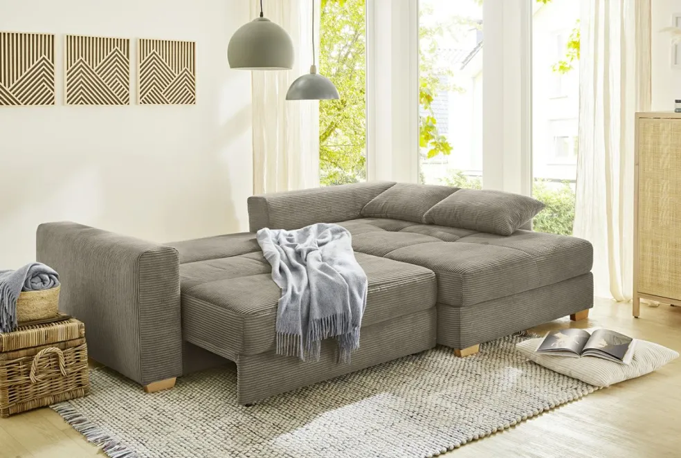 | Equipement canapés: | Dos habillé, Méridienne à droite ou à gauche, incl. coffre de lit, incl. coussins | ||