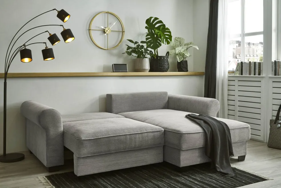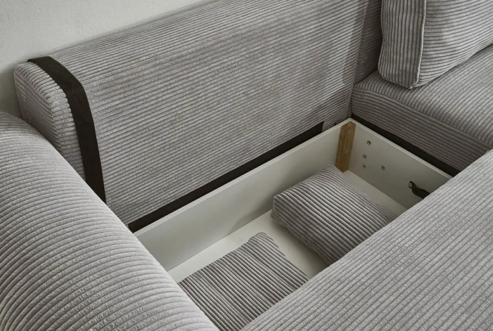 | Equipement canapés: | Dos habillé, Méridienne à droite ou à gauche, incl. coffre de lit, incl. coussins | ||