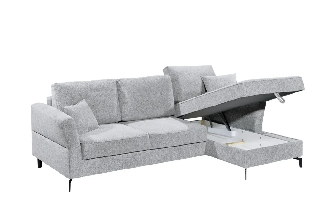 | Equipement canapés: | Dos habillé, Méridienne à droite, incl. coffre de lit, incl. coussins | ||