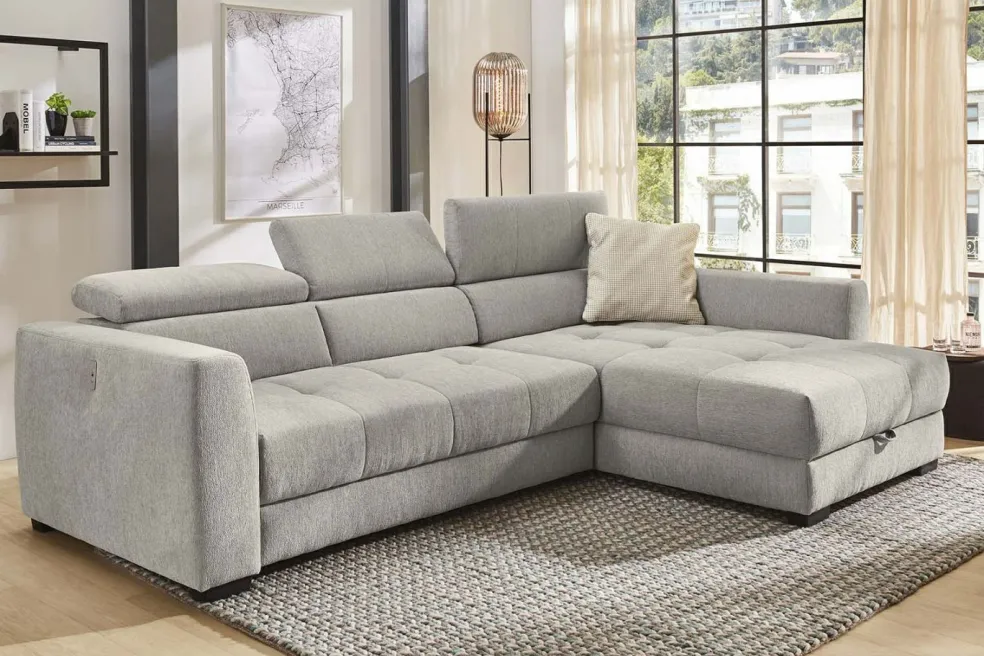 | Equipement canapés: | Appuie-tête(s), Dos habillé, Méridienne à droite ou à gauche, Port USB, Prolongement de l’assise motorisé, incl. coffre de lit, incl. coussins | ||