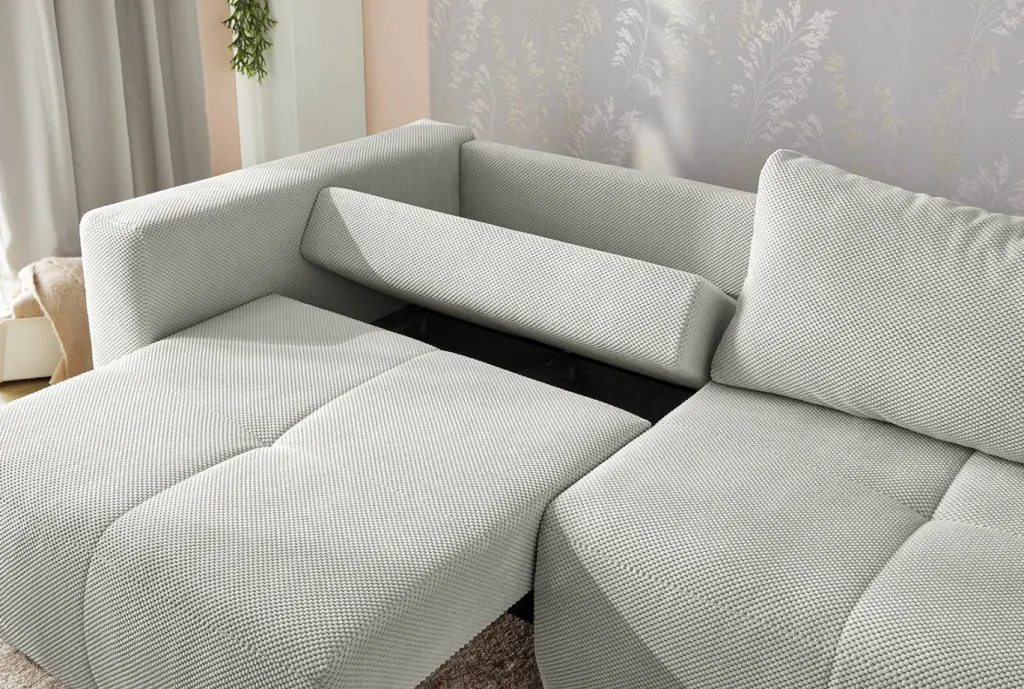 Les deux assises peuvent coulisser séparément et permettent de transformer le canapé en lit spacieux en un tour de main.