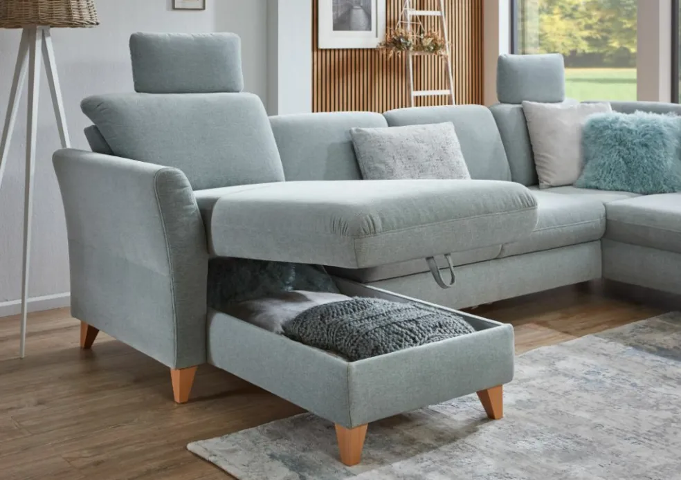 | Equipement canapés: | Espace de rangement, Méridienne à droite, incl. coffre de lit | |