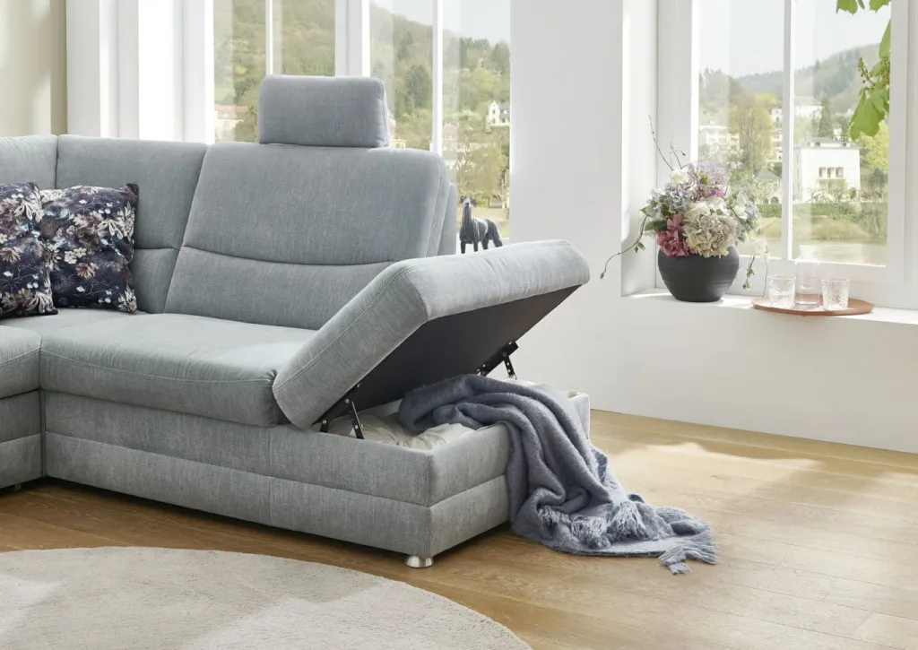 | Equipement canapés: | Dos habillé, Méridienne à gauche, incl. coffre de lit | ||