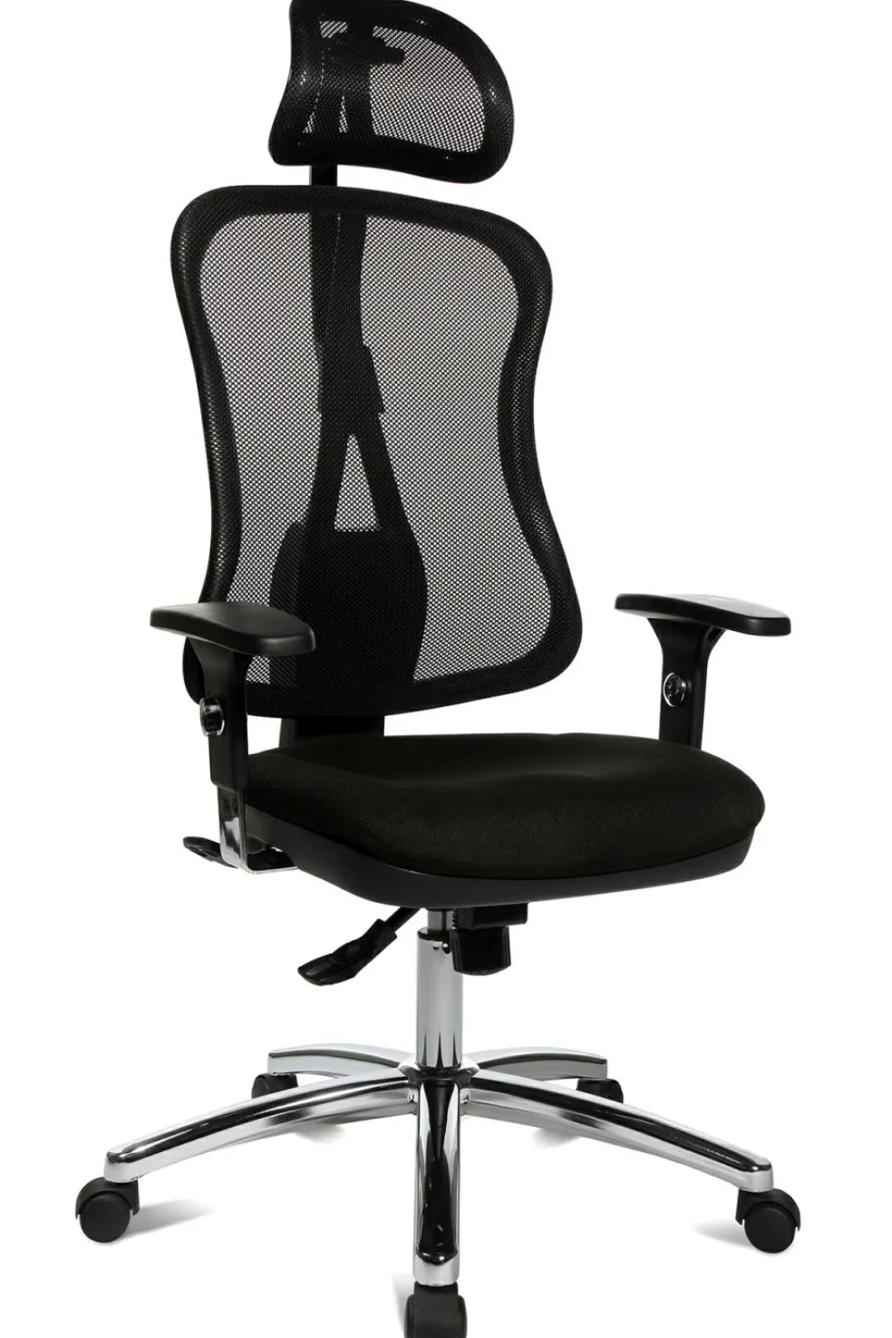 dossier ergonomique réglable en hauteur par système à crémaillère avec soutien lombaire intégré