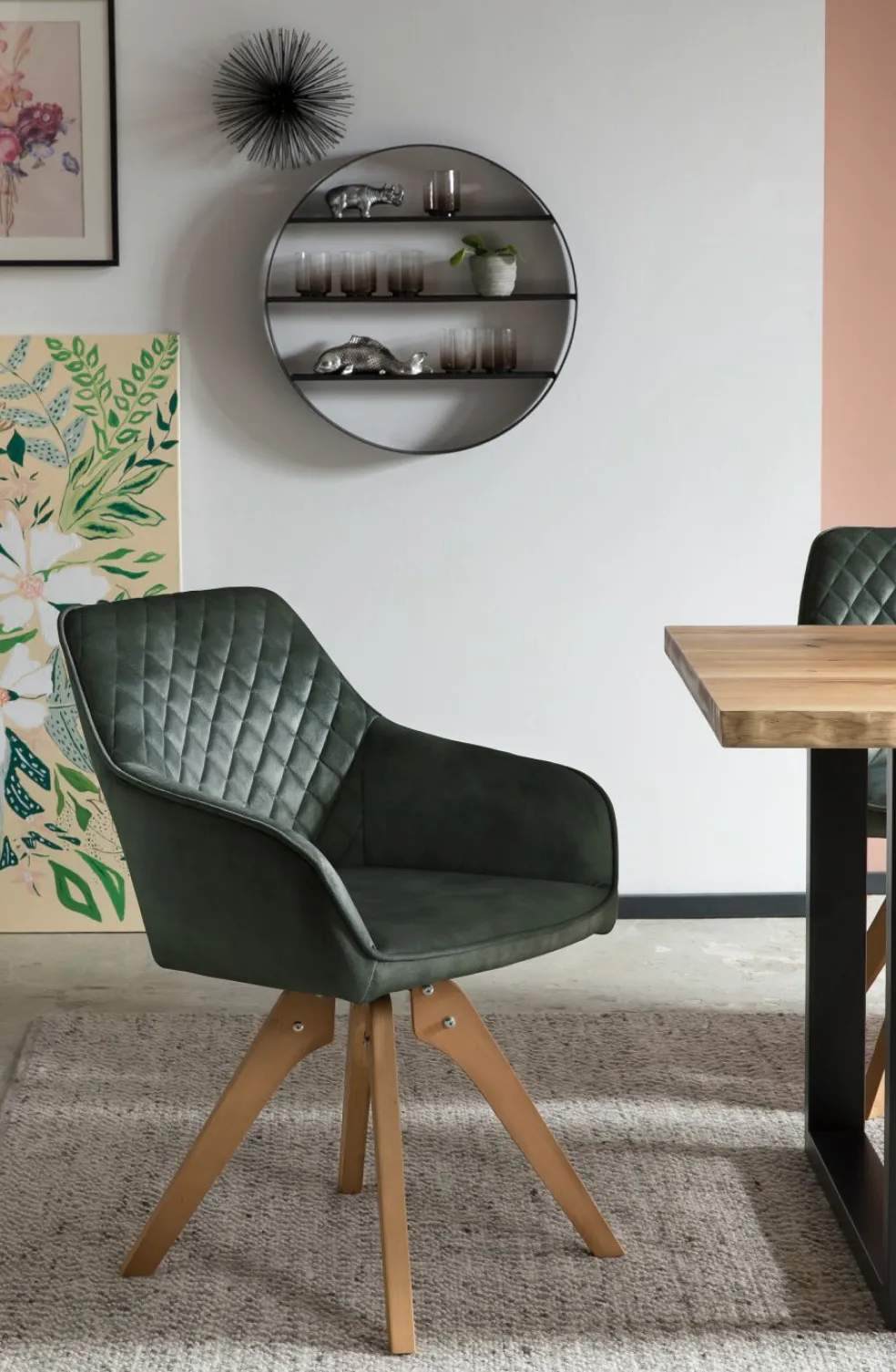 avec surpiqûres en losanges et plateau pivotant à 180° sous l’assise