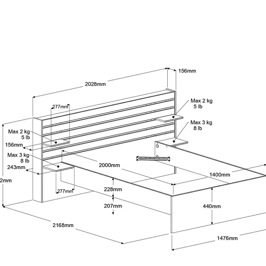 | Lit avec rangement | 203 | 99 | 217 |