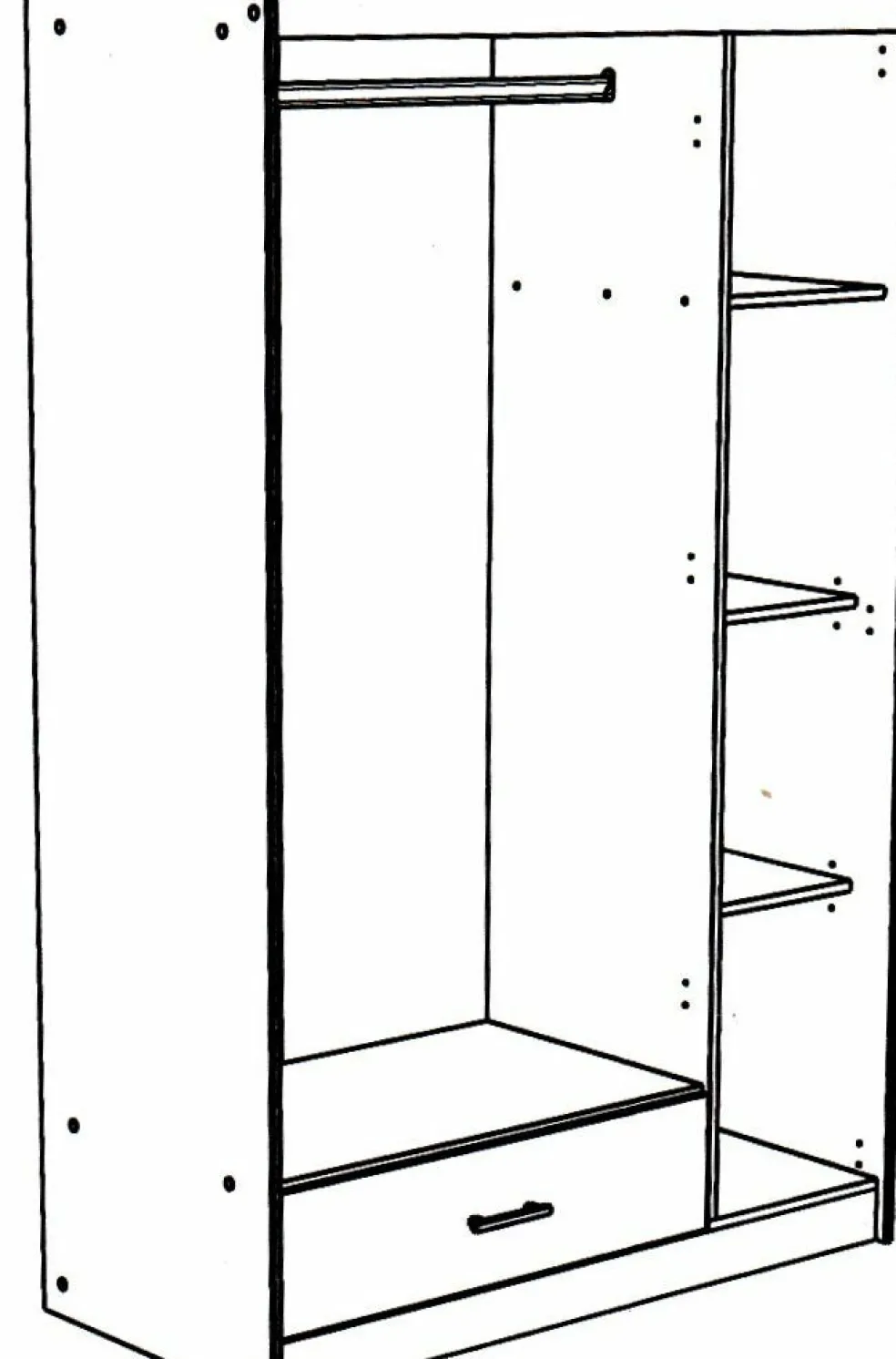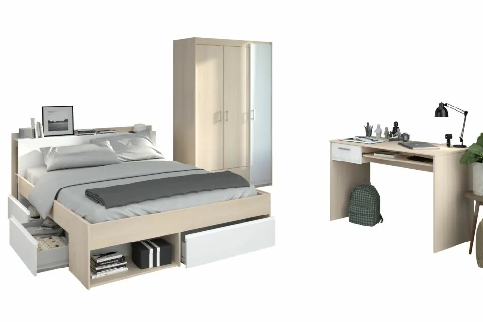1 tête de lit avec tablette et, de chaque côté, 2 casiers