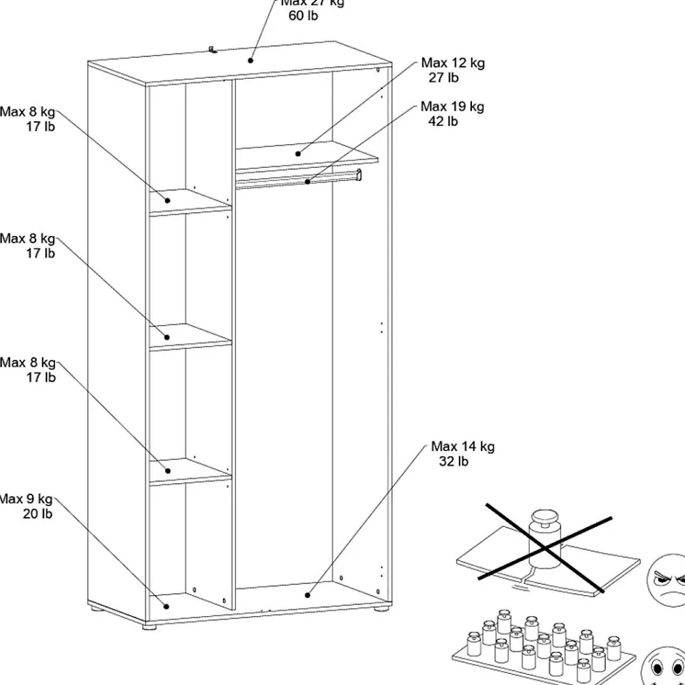 | Armoire à vêtements | 92 | 84 | 40 |