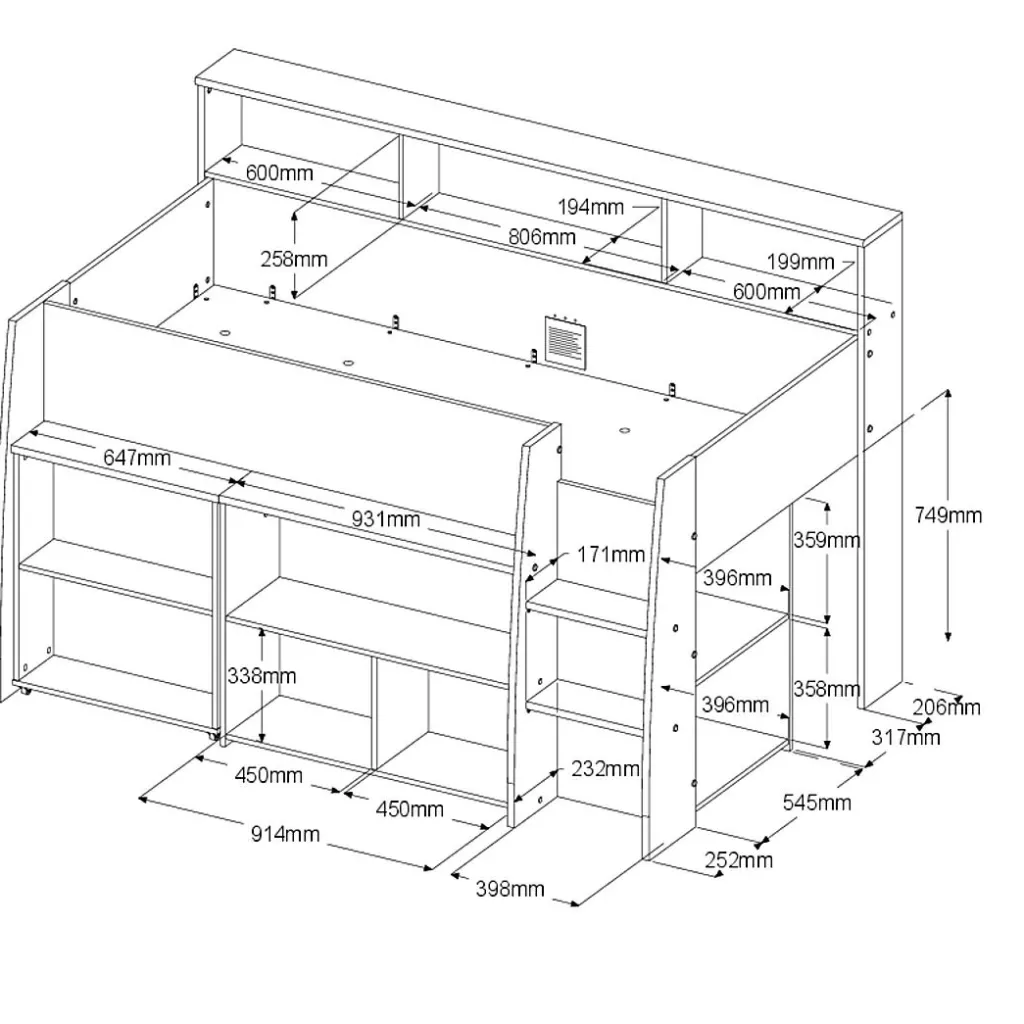 | Lit mezzanine avec bureau ouvert | 209 | 140 | 210 |