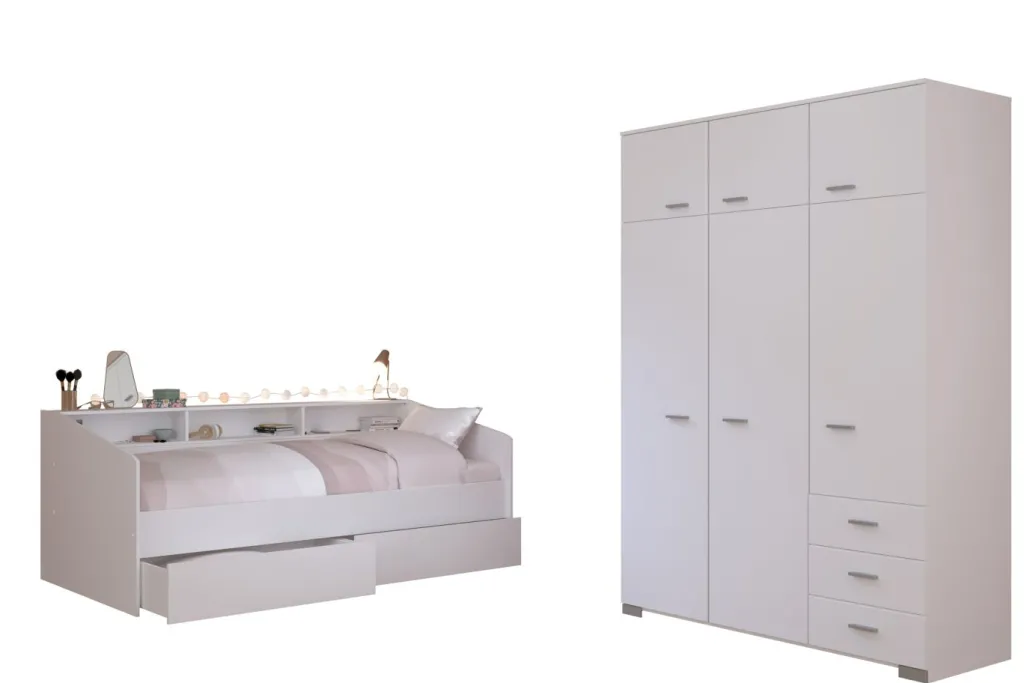 À gauche : en haut 1 casier et, en dessous, 1 barre de penderie