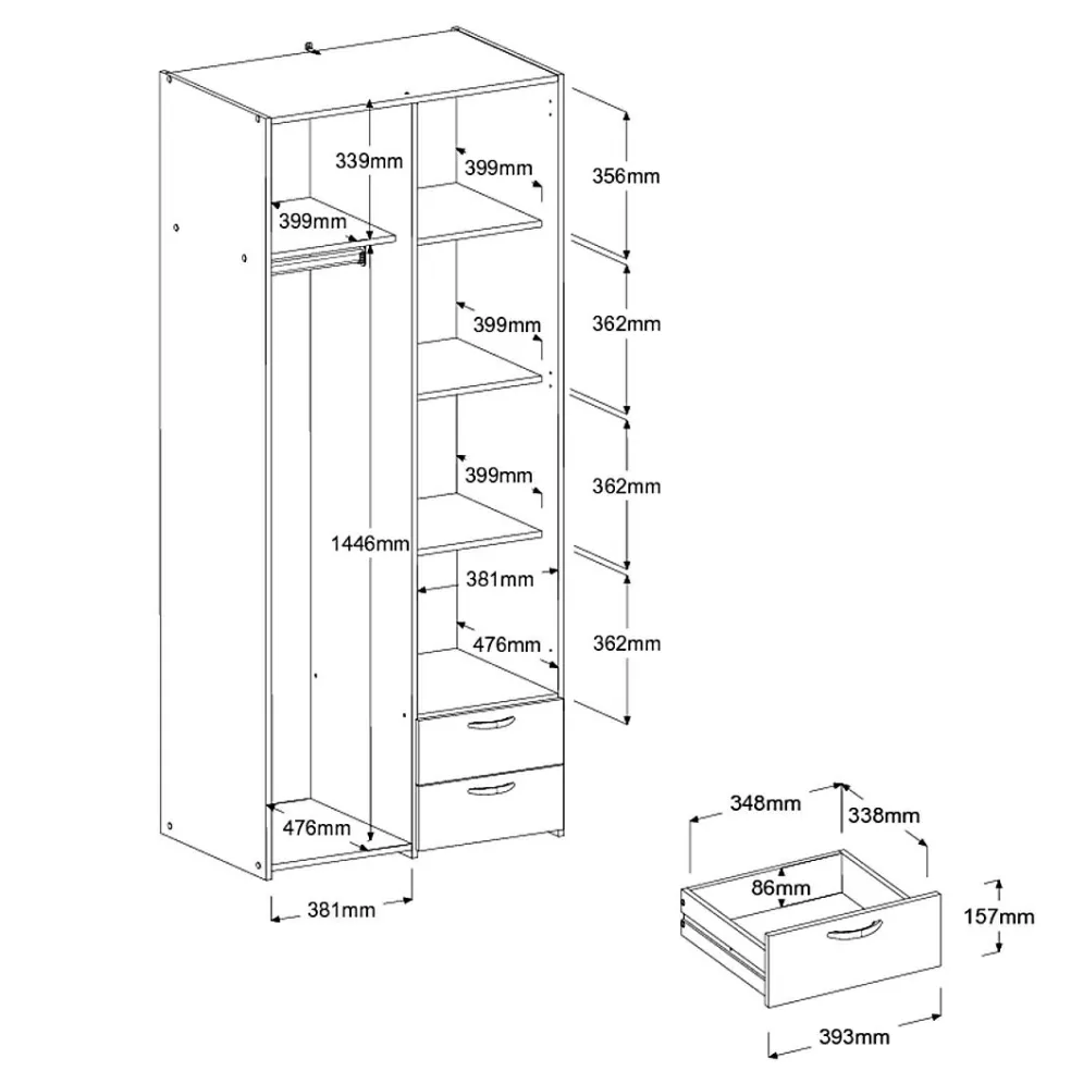En haut à gauche : 1 casier et, en-dessous, 1 barre de penderie