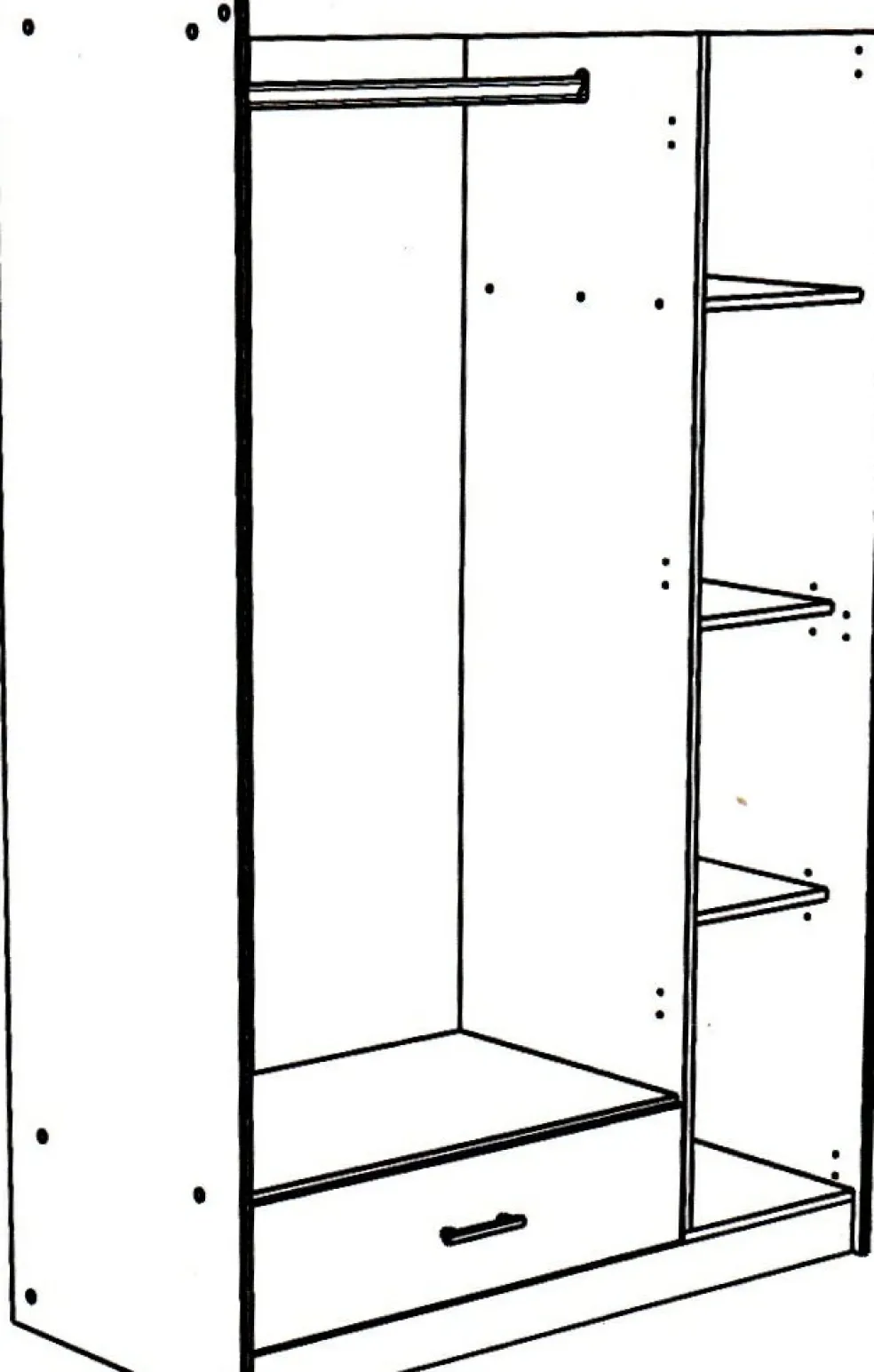 à gauche : 1 barre de penderie et 1 tiroir