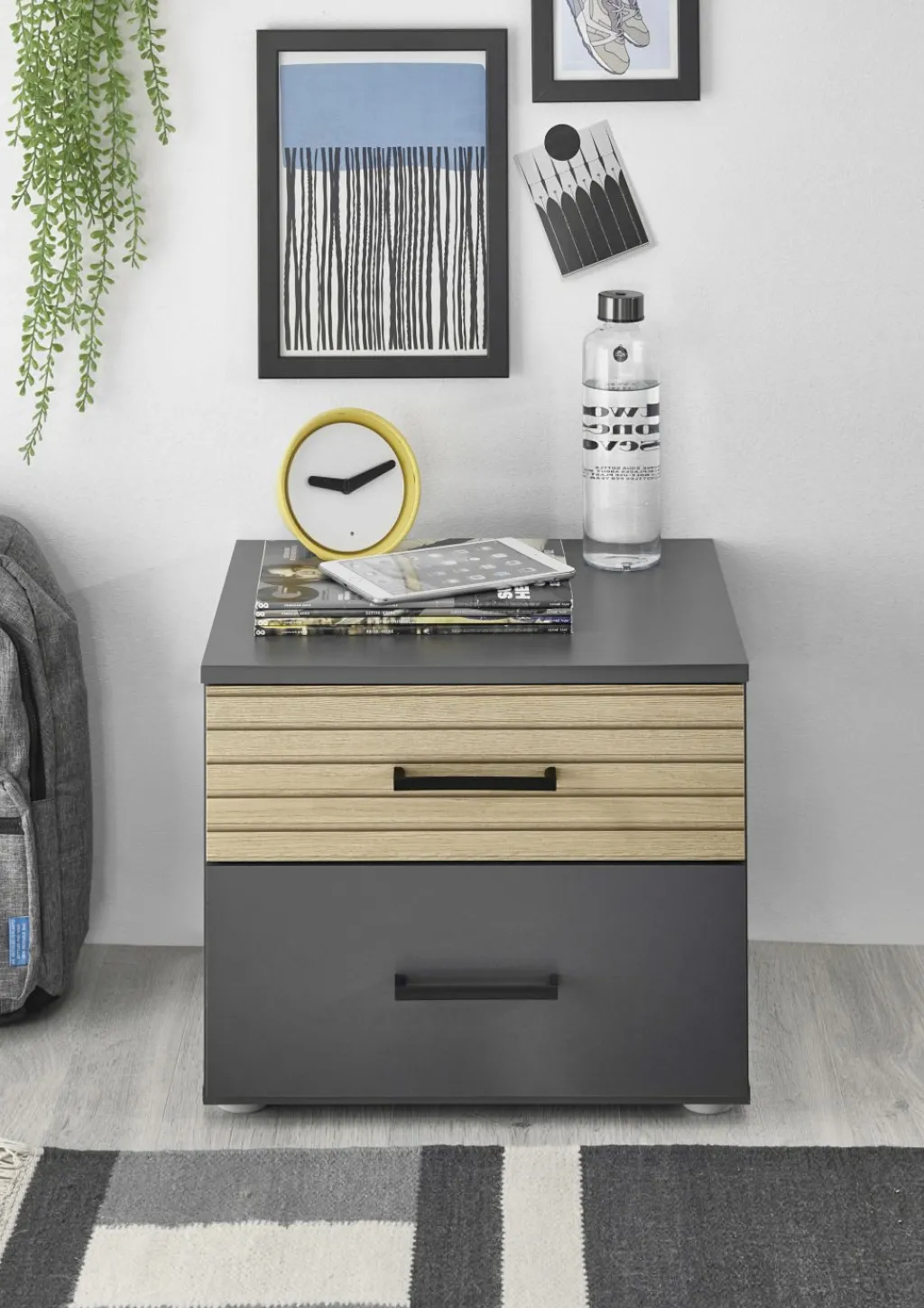 ton graphite avec façade tiroir décor lamelles de chêne, revêtement mélaminé