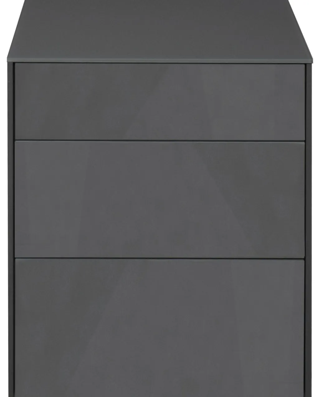 Façade et caisson : vernis anthracite mat / verre anthracite brillant