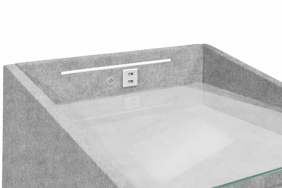 | Équipement Commodes Phono Bureau Étagère: | Plateau en verre, Tiroirs, avec port USB, incl. éclairage | ||