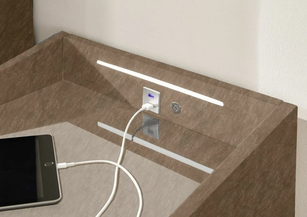 | Équipement Commodes Phono Bureau Étagère: | Plateau en verre, Tiroirs, avec port USB, incl. éclairage | ||