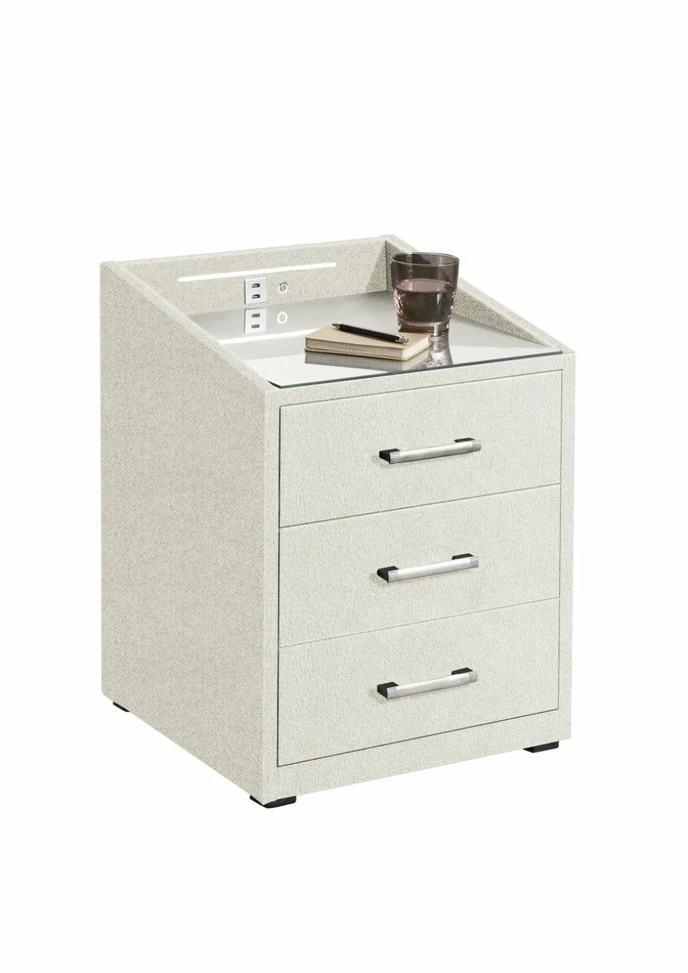 | Équipement Commodes Phono Bureau Étagère: | Plateau en verre, Tiroirs, avec port USB, incl. éclairage | ||