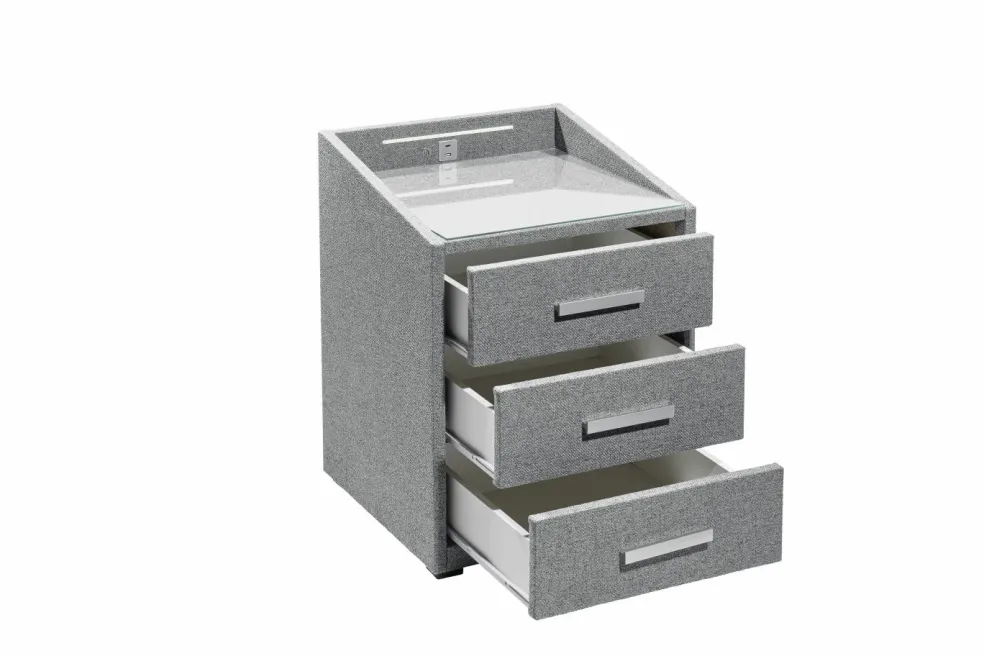 | Équipement Commodes Phono Bureau Étagère: | Plateau en verre, Tiroirs, avec port USB, incl. éclairage | ||