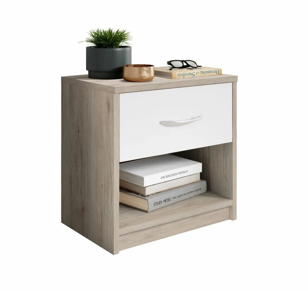 Façade : décor chêne San Remo avec un tiroir ton blanc