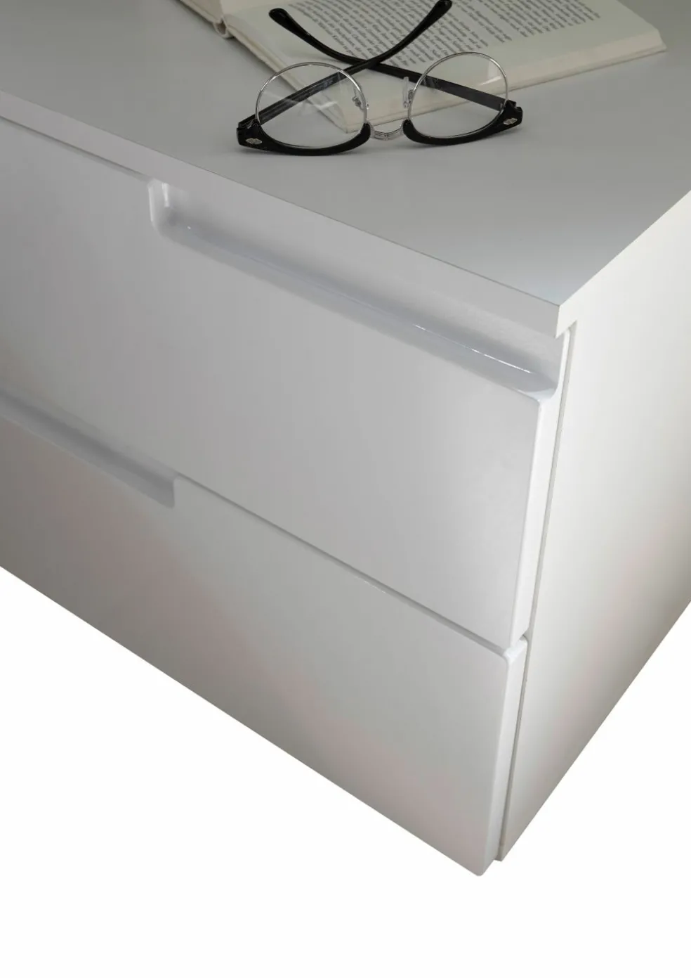 Façade : MDF (panneaux de fibres de bois de densité moyenne) ton blanc ultra brillant thermoformé