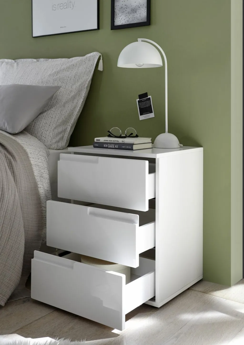 Façade : MDF (panneaux de fibres de bois de densité moyenne) ton blanc ultra brillant thermoformé