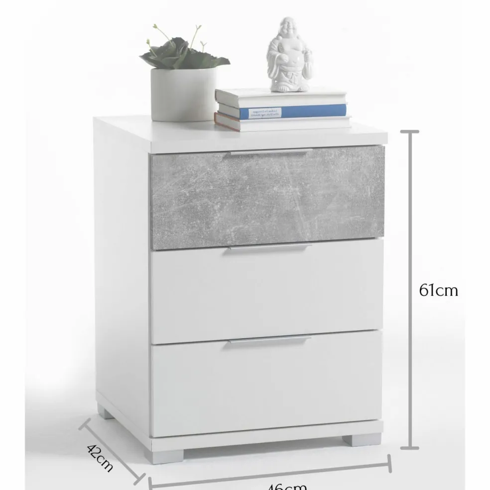 Façade et caisson : ton blanc avec une façade de tiroir aspect béton