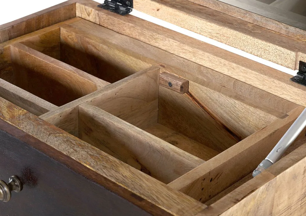 Caisson : bois de manguier massif (Inde), teinté et laqué, ton naturel