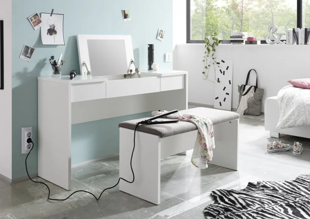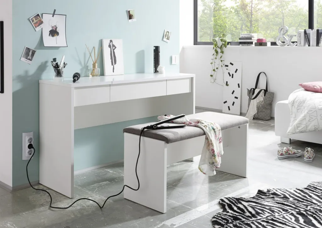 1 coiffeuse avec 2 tiroirs et 1 abattant avec miroir
