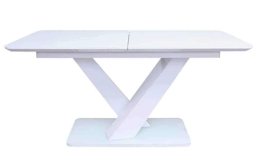 Plateau de table et socle : MDF (panneau de fibres de bois de densité moyenne) ton blanc et verre