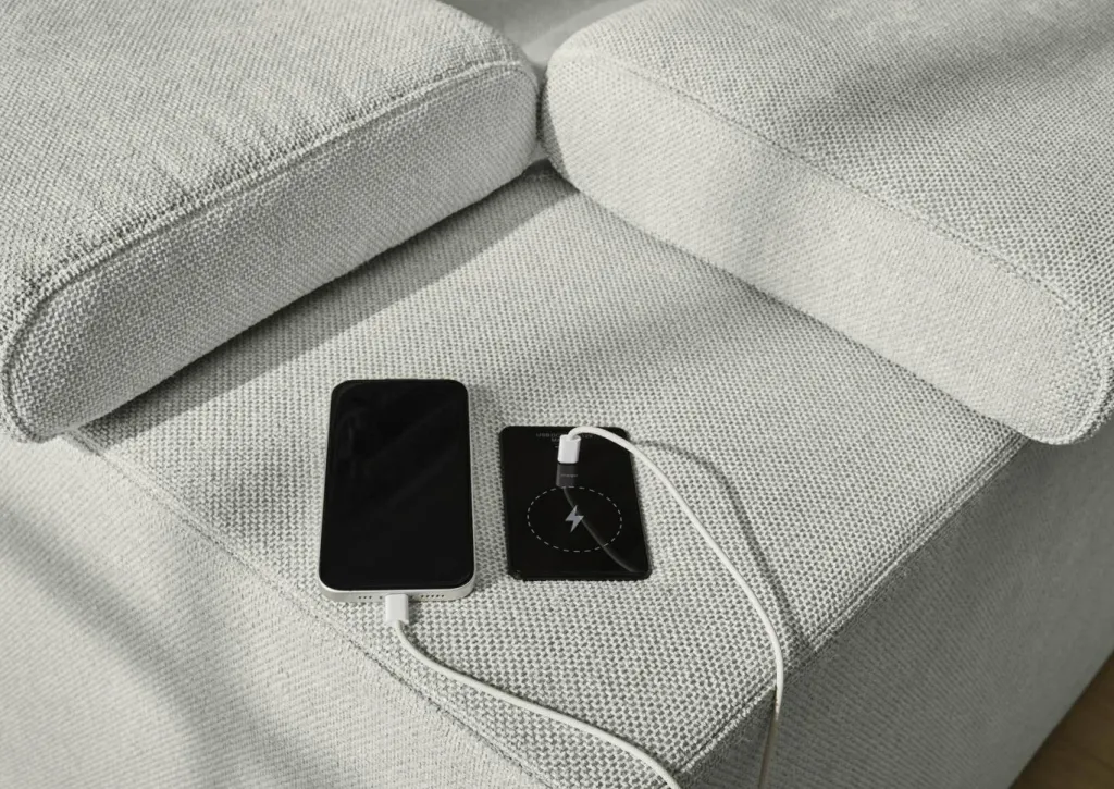 Station de recharge USB (A et C) avec possibilité de recharge par induction dans le canapé d’angle