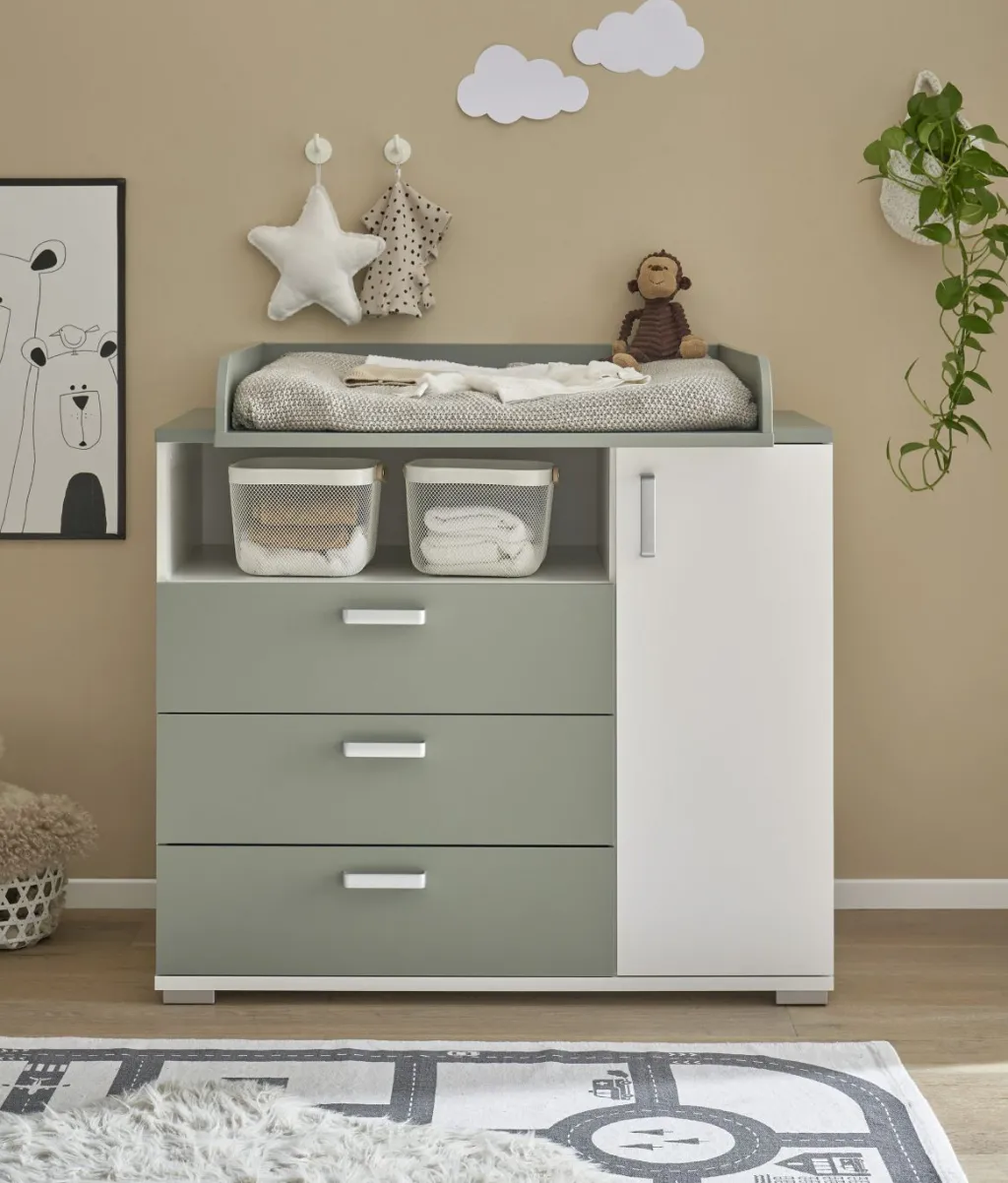 | Équipement Commodes Phono Bureau Étagère: | Portes, Tiroirs, incl. plan à langer | ||