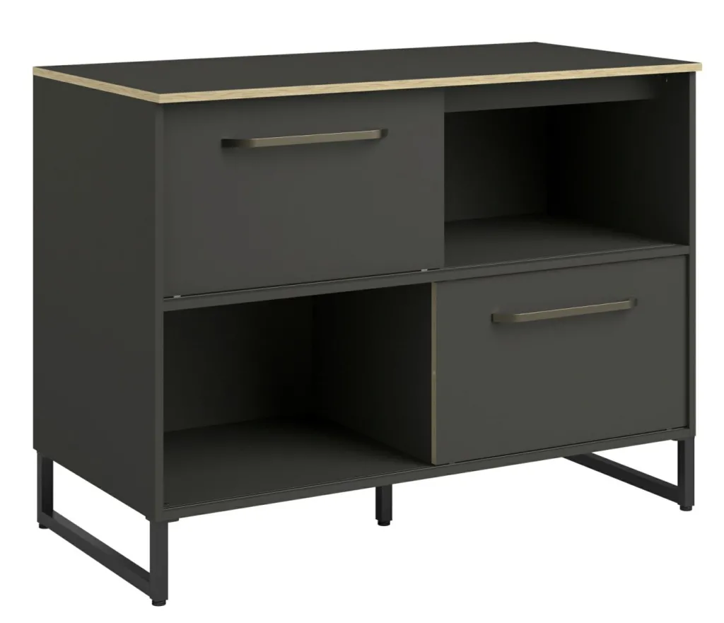 avec 4 casiers dont 2 peuvent être masqués par les portes coulissantes