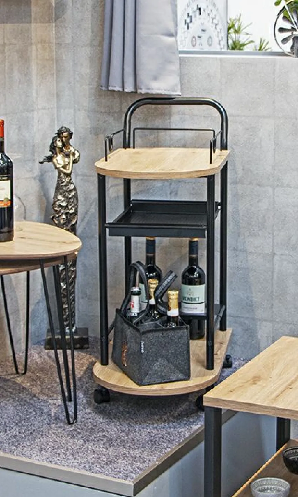 Plateaux : MDF (panneau en fibres de bois de densité moyenne) décor chêne clair avec nœuds