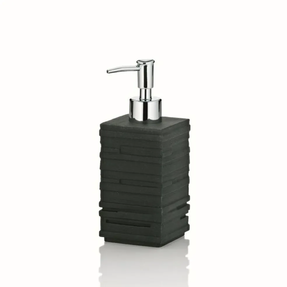 Les accessoires de bain sont en matière synthétique facile d’entretien dans un coloris noir tendance. Le distributeur de savon de forme rectangulaire en matière synthétique n’est pas seulement élégant mais aussi fonctionnel. Pour le remplir de savon liquide, il vous suffit de dévisser la pompe.