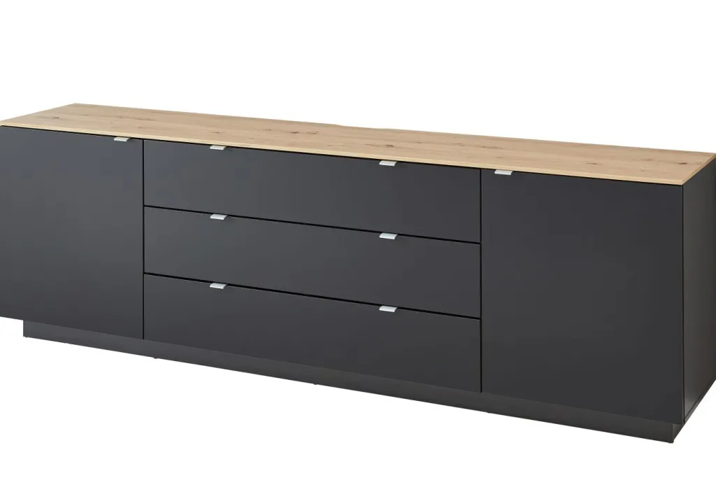 Caisson : ton noir avec panneau supérieur décor chêne Artisan