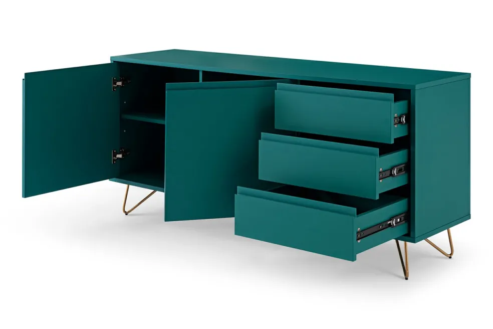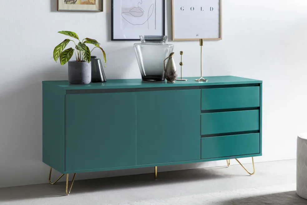 Caisson et façade : MDF (panneau de fibres de bois de densité moyenne) laqué ton bleu mat