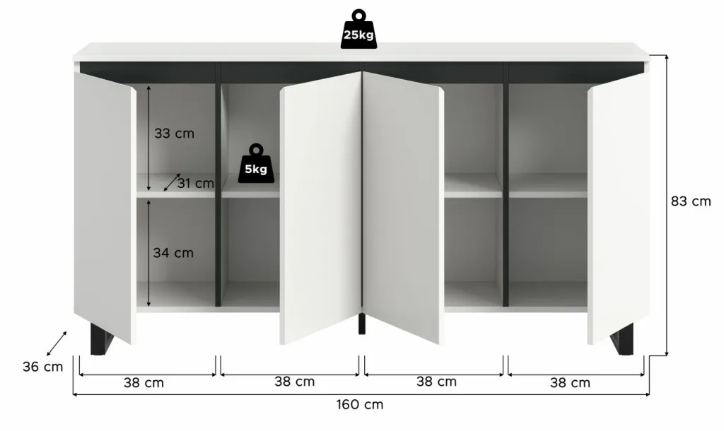 | Dimensions : | L/H/P env. 160/84/36 cm | ||
