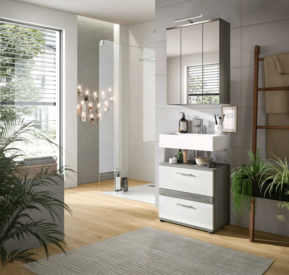 1 meuble sous vasque avec 2 tiroirs